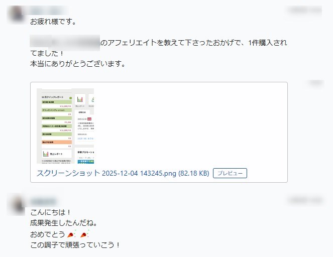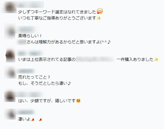 複業型 アフィリエイトセミナー 次世代型ネット資産構築法! アフィリエイトを始めたけれど、何から手をつけたらいいのか、分からない・・ということはありませんか? そのため、多くの人は貴重な時間を情報収集に充てています。これは時間の浪費です。 70歳の方が成果を上げている理由は、土台作りとなる「型」をマスターしているからです。あなたは、出来ていますか? 商品の選び方って簡単じゃない・・ アフィリエイトは、数万点ある中から売れるものを探す必要があります。そのためには、視点や成果を上げる考え方、競合と差別化する情報も必要です。 売れるキーワード選定 キーワードは、売れるキーワード、売れにくいキーワードがあります。これは、人の心理状態によっても検索窓に打ち込むキーワードが異なるように、どこにポジションを置いて考えるかによって、発想も変わります。 ライティングで売れるサイトへ アフィリエイトのライティングは、小説家と違い、スキルは必要ありません。それよりも、売れるライティングが出来るかどうかが勝負です。そのため、どのような順序で何を伝える必要があるのか等、マスターするための土台作りからスタートします。 ストアカ アフィリエイト講師 ストアカは、サイバーエージェントが株主になっている国内最大級のスキルシェアサービスです。 全国から各分野の講師が集まるストアカでアフィリエイト講師を担当しています。 アフィリエイトって何?どうやって稼ぐの?など、基礎的な所を中心に教えています。 アフィリエイトって怪しいじゃないの?という方は、アフィリエイトの本質が分かるセミナーになっているのでぜひご参加くださいね(^^♪ ストアカ 15位/82,000講座 ストアカは、サイバーエージェントが運営する生活から占い、心理学、語学など82,000の講座のあるスキルシェアサービスです。 その中でも、アフィリエイトは、ニッチなジャンルではありますが、当講座のアクセス数は全体の15位前後(変動あり)と皆さまに興味を持って頂くことが出来ています。 Kindle電子書籍 Amazon電子書籍のIT部門1位を獲得!(2020年)これからアフィリエイトを始める方に商品の選び方の入門をお届けします。(現在は非売品)アフィリエイトは、最初のスタートが肝心です。ここが抜けてしまうと、3年、5年があっという間に過ぎます。時間の浪費=人生のムダにならないためには、ノウハウではなく、考え方が全てです。 40代、50代、60代、全くのゼロからのスタートです♪ みんなのアフィリエイト成果経過報告! アフィリエイトをどうやって始めるのか全くゼロからでも安心してスタートできます。 ゼロから始めて 今月1万円を初めて超えました! コメントブログアフィリエイトは、最初のコツを掴むことが本当に大切です。これが出来るか出来ないかで、時間が大幅に変わります。多くの人は、何年も経過しますが、講座でお伝えした内容を繰り返せば、成果まで直線距離です! 今までやってきたことが少しずつ♪ 成果発生と特単スカウト コメントアフィリエイトを全くのゼロからスタートし、今では、ASPから特単や商品提供など実績を少しずつ積上げていらっしゃる方です。とにかく前向きにコツコツ続けていらっしゃるので、ブログの認知度も上がってきています。正しいやり方を続ければ、見えて、先も明るく見えてきますよね。 70代で年金に頼らずに生活! 高額報酬が得られました! コメント70代でアフィリエイト知識ゼロの状態から、今では会社員並みの成果まで出せるようになって頂きました。教える側としても、予想以上に驚いています。これからの未来もどんどん明るくなっていくのではないでしょうか♪ 成果がでるのが半信半疑だったけど 成果が出てびっくり! コメント1年間、頑張って続けて頂き、お疲れさまでした。アフィリエイトを始めた頃は、どうすれば成果につながるのか分からないまま続けていたと思います。でも、土台作りと基礎が固まってくることで、時間に無駄がなくなり着実に成長していくことを実感できたと思います。ぜひ、今後も資産として育てて頂けたらと思います。 ブログが某メーカーの公式に掲載! メディアとして掲載されました!(ブランド化) コメントアフィリエイトを始めて約1年間継続して続けた結果、某メーカーの公式サイトにブログが掲載されました。これも、単なるブログから有益なメディアサイトとして認識されている証だと思います。ぜひ、この調子でブランド化を続けていきましょう! ダラダラと書いてましたが。。 また、成果が発生しました! コメントコツコツと正しいやり方で続けることが成果にもつながります。一般的に知られているノウハウや情報ではなく、正しい土台を作ることができれば、時間=お金に少しずつ変わってきますよね。 アフィリエイトってどんなものか知ってからスタート! 丸3ヶ月で初めて成果が発生しました! コメント以前開催した、アフィリエイト1時間セミナーでは、全体像など